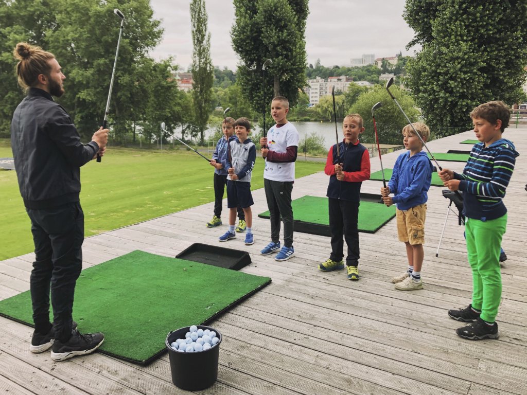 - Zahrají si golf – odpalování i patování na greenu Českého golfového klubu.